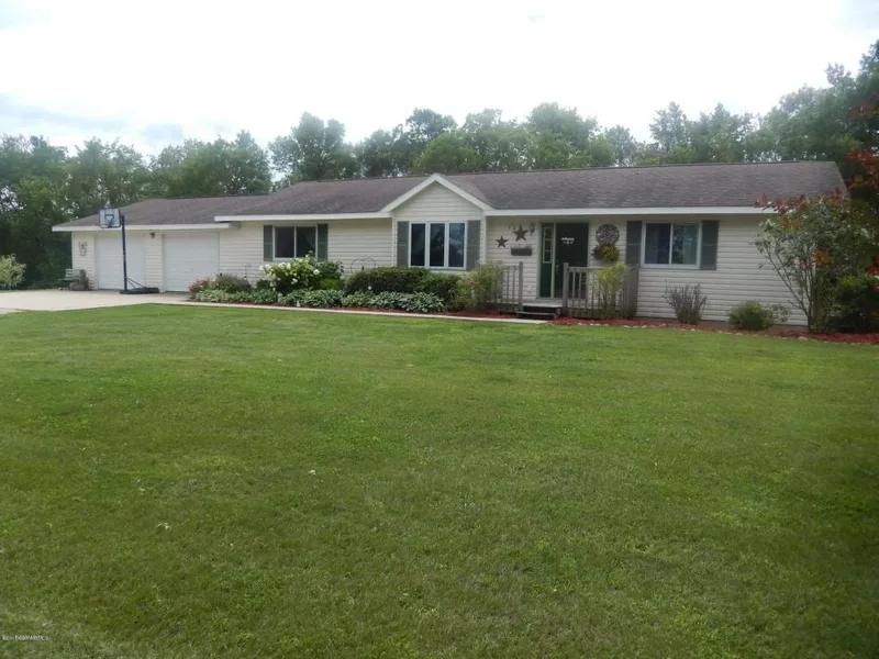 Gorgeous setting for this 12.43 acres just outside the city limits. Large ranch home with 4 berooms(3 on main), 2 baths, open living and dining room, master bath w/jetted tub, main floor laundry/mudroom and vaulted ceilings. Lower level is roughed in for bath, 5th bedroom, family room w/walk-out and rec area. Large deck overlooks private back yard, 20x36 horse shed, 26x36 machine shed, wildlife