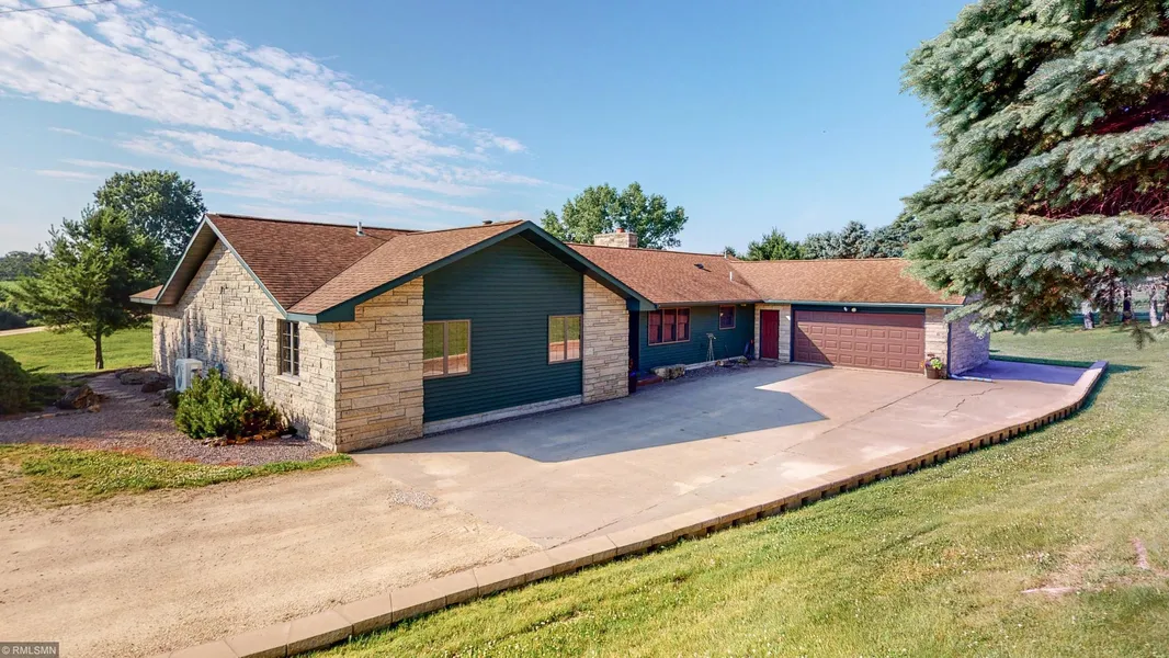 This home is full of character from the unique stone accents to the limestone exterior. Close to 3,000 sq ft and all amenities on one level. The recently remodeled kitchen includes newer appliances, granite counter tops, wine rack, mini fridge, and gorgeous farm sink. Brand new mini split A/C units double as electric heat and cooling. The master bedroom has ceiling to floor windows and a beautiful view of the pond. Southeast facing house provides incredible sunrises while the shaded patio is perfect for the evenings. Brand new 42 x 56 shop with roughed in plumbing, spray foam insulation, ceiling fans, finished ceiling, vaulted patio, and septic. Mature trees line this 5.23 acre property providing ample privacy. This gorgeous oasis awaits won't last long!