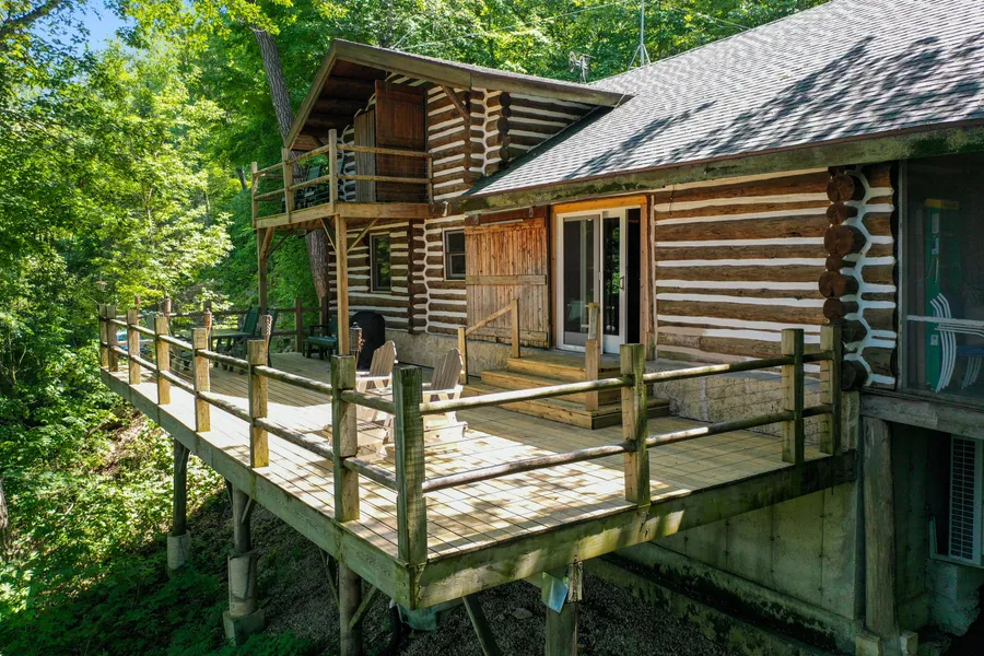 This truly unique hand scribed log cabin is perched on the bluff overlooking the South Branch of the Root River in central Fillmore County. Enjoy unmatched privacy and seclusion from the deck overlooking the sparkling waters which include 2,100 feet of private trout stream frontage. Upon entering the front door it feels like you are stepping back in time. The natural stone fireplace stretches from floor to ceiling and the colossal white pine mantel is absolutely incredible. With custom fitted log construction inside and out the entire structure is a work of art. There are 2 bedrooms on the main level and large loft which offers plenty of room for folks to spread out. The bathroom was recently updated and the cabin was retro fitted with modern climate controls. If you venture out onto the 41.6 acre property you will discover one of the most impressive stands of towering red oaks fo...