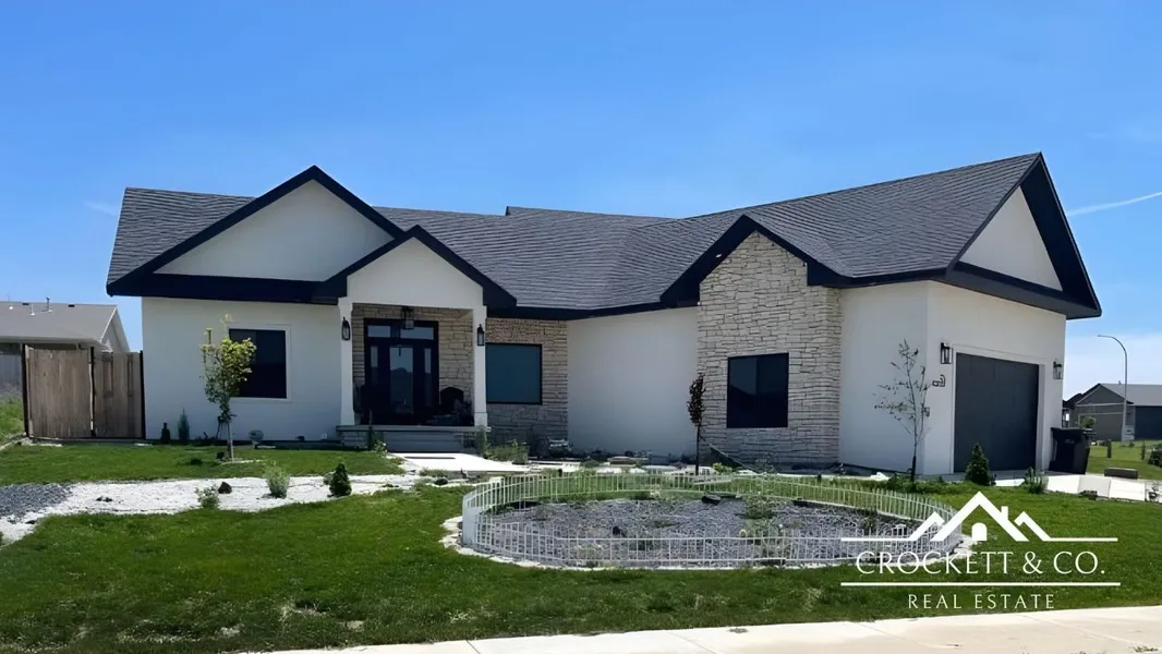 Stunning Corner Lot, custom home w/designer finishes. This exceptional home offering unique & low maintenance curb appeal, upscale finishes & potential to finish off the basement w/ your finishing touches! Step into a bright, light space w/ 10-12' vaulted ceilings, a dramatic beam,& custom lighting. The kitchen, true showpiece, featuring: Premium quartz-marble countertops & island, stylish gold accents and large open space perfect for hosting. A stunning floor to ceiling, stone fireplace anchors the space. The primary suite has dual sinks and boasts a 5ft onyx walk-in shower. The basement just needs your finishing touches w/ 3 bonus rooms with sliding modern doors. The bathroom downstairs is finished and perfect for your guests. Walk out to a covered patio w/ lighting and a professionally landscaped yard (back/front), turf areas, "David Austin" rose gardens & evergreens. This remarkable ...