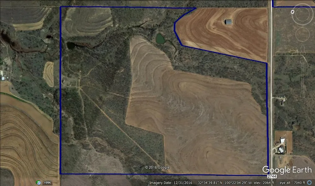 238+/- acres on FM 2744, about 8 miles north of Sweetwater, TX, just east of Texas Highway 70. Mix of active cultivation and mesquite pastures with rolling terrain, gentle elevation changes and great views around the surrounding countryside. Great location and potential for a homesite and/or recreational tract, with paved frontage and utilities available along the highway.