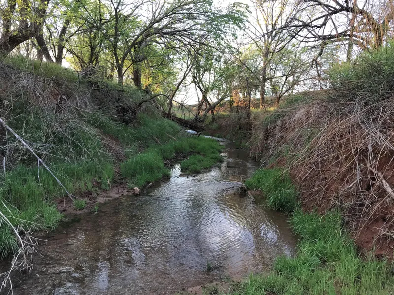 Terrain: The overall topography is flat to slightly rolling. Approximately 185 acres are currently in cultivation (Wheat) and the balance is native Mesquite pastureland with hardwood trees along the creek and draws.
