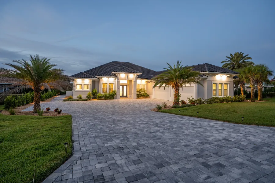 A romantic paradise nestled along Hammock Dune's premiere waterfront community called Island Estates. Pristine, extraordinarily detailed, 2022 construction with unimpeded views from just about every room in the house. This home's design and construction quality is the definition of ''impeccable.'' with the highest attention to details. Designed by Ben Butera and custom built by Charles Rineck this home has every upgraded feature in a new home you would want. From the moment you walk through the double entry doors you're greeted with all-encompassing views of the intracoastal waterway. The heart of this home is the stunning kitchen, a culinary haven equipped with top-of-the-line appliances that include a Sub-Zero refrigerator, Wolf gas range and oven, and Cove dishwasher. The kitchen effortlessly flows into a welcoming great room, overlooking a sparkling pool that invites relaxation and entertainment. Adjacent to the kitchen, a charming dining area bathed in natural light provides an ideal space for intimate gatherings. The home was designed for an open concept plan with the main home featuring 4 Bedrooms, 3.5 Baths, Office, Butler's Pantry. No need to worry about pantry space when there's a separate Butler's Pantry with built in cabinet storage, sink and Sub-Zero wine refrigerator. Luxurious primary bedroom with 2 oversized walk-in H/H closets and custom closet design. There's plenty of room for guests with a private room and ensuite bath and 2 large guest rooms that connect with a jack n jill bath. No need to worry about space when all 4 bedrooms ll guests can accommodate king size beds. A separate guest house which includes a private office, full bath, and bedroom with its own entry access. An outdoor luxury living space to enjoy for the serious and dedicated golfer, the only way to improve is to practice with 1 of 2 chipping greens. The design of this outdoor living space seamlessly blends the elegant spaces for relaxation and entertainment. This waterfront retreat features an infinity edge pool and an array of captivating water features, heated pool, and spa with an outdoor firepit. No need to worry about pest when you can spray the mist away for unwanted pests. This zero-edge pool was designed to enhance the incredible view looking through the home, to the intracoastal waterway and boasts a sunken firepit located next to the spa and private putting green. The 4 car + garage can accommodate full size SUVs with plenty of space. The garage also includes with air-conditioned storage closet for your golf clubs and additional 685 sf of air-conditioned storage room with permanent staircase above the garage. Garage also includes a charging station for your Hybrid vehicle. The location is truly unrivaled, with close proximity to the beach. Security is not an issue when you can watch your compound from the 4 outside cameras with nest station at your front door. Hammock Dunes Club Membership is available but not required. Recognized as one of the world's top Private Clubs, Hammock Dunes is an award-winning Oceanfront Club with 2 Audubon Certified golf courses, oceanfront clubhouse, pool, 5,000 sf fitness center, croquet, social activities and more! Wonderful dining options such as Elegant Oceanfront Dining, The Dunes Tavern, Alfresco Dining, Low Country Style Dining. Enjoy our small town with its quiet, pristine beaches while big city life in Jax or Orlando is just 1 hour away.
