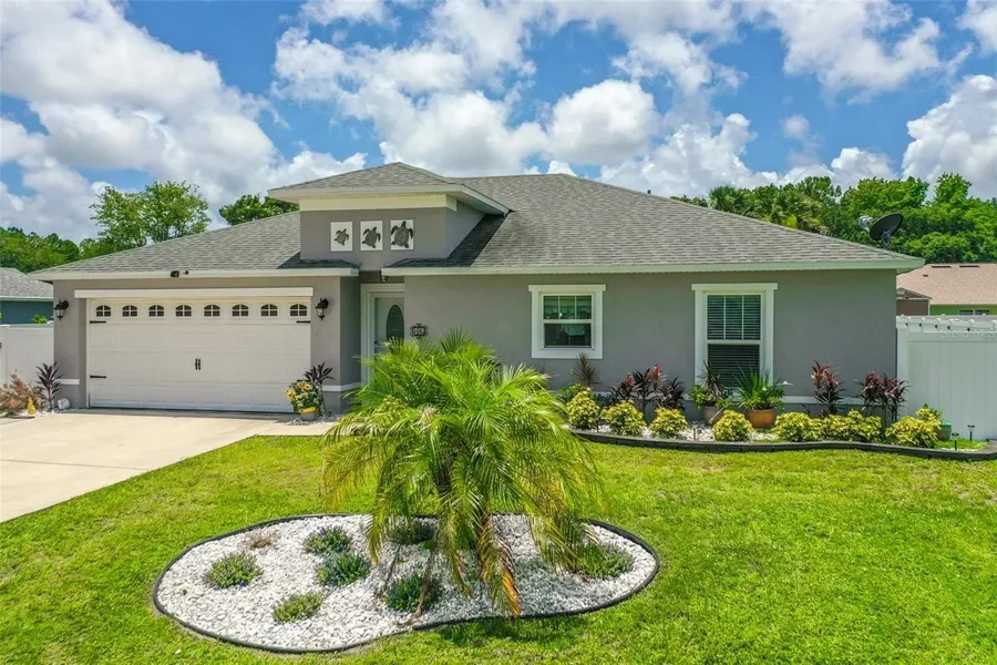 This spacious preferred concrete block built 3-bedroom, 2-bath, 2-car garage house showcases an open floor plan designed for modern living, seamlessly incorporating outside, starting with customized Florida room, transitioning to whimsical backyard with all weather elevated lanai, and solar lighting, making the magic come alive in the evening!