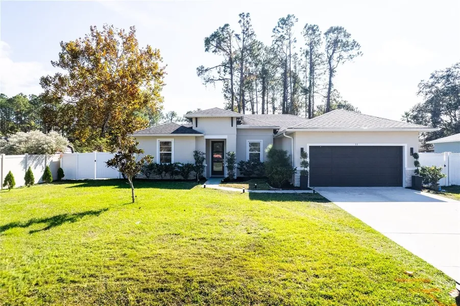 This contemporary Palm Coast home offers a bright, open layout designed for comfort, style, and easy living. The kitchen stands out with a large island, solid-surface counters, and modern finishes that complement the spacious living and dining areas filled with natural light.