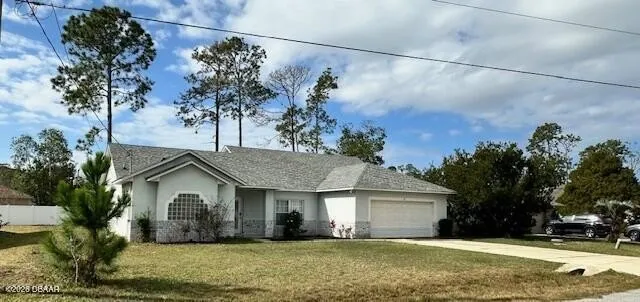 Beautiful and exceptionally spacious single-family home tucked away on a quiet cul-de-sac! From the moment you enter the extra-large vaulted foyer, you'll appreciate the open, airy design that flows seamlessly into the expansive family room. High vaulted ceilings throughout enhance the sense of space and natural light. The thoughtfully designed open floor plan offers multiple living areas, including a bonus space that can be used as a home office, formal dining room, or additional sitting area. The kitchen is perfectly positioned to overlook the main living space-ideal for entertaining guests-while the peninsula bar adds charm, functionality, and additional seating. The interior has been refreshed with a fresh coat of neutral paint, new flooring in the living areas and bedrooms, and new blinds throughout. The split-bedroom layout provides privacy and comfort. The massive primary suite features vaulted ceilings and French doors that open directly to the covered lanai. The extra-large ensuite bath includes a double-sink vanity, private water closet, large jetted Jacuzzi tub, spacious walk-in shower, and an oversized walk-in closetcreating a true retreat. Two additional generously sized bedrooms offer ample space for family or guests. Three sets of French doors open to the covered lanai, blending indoor and outdoor living. The large backyard is 3/4 fenced, providing plenty of room for play, pets, or gatherings. A 2-car garage and oversized driveway offer ample parking for guests. Conveniently located near Interstate 95, Route 100, and Route 1, with easy access to shopping, schools, and the hospitaland just 15 minutes to the beach. This spacious home offers comfort, flexibility, and the perfect setting for family living and entertaining.