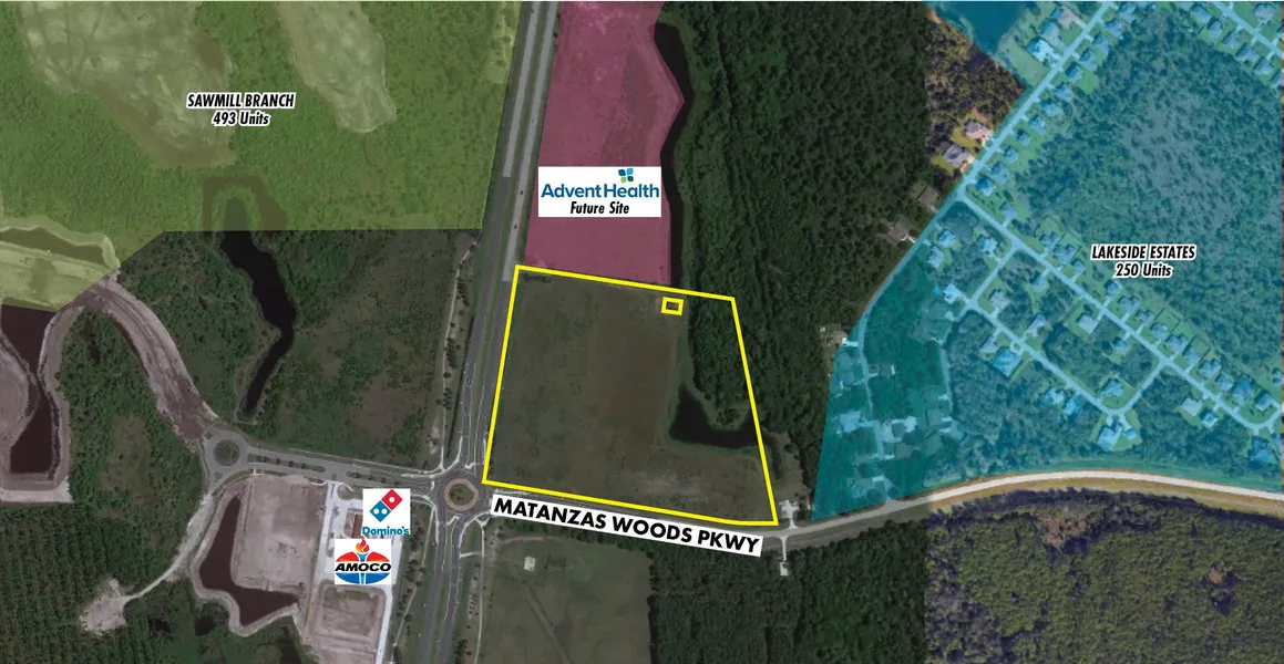 Located in the rapidly growing northeast quadrant of Central Florida, Matanzas Pointe is a fully entitled commercial shopping center site. Positioned strategically between the commercially unserved north Palm Coast communities (several thousand homes) and Palm Coast Park (fully approved DRI for over 3,000 residential units). Thousands of acres of land are under contract in the NE quadrant that are set to be commercial or residential uses. Just 3 minutes from the I-95 interchange on the corner of US 1 and Matanzas Woods Parkway. Close in proximity to key economic drivers including Flagler College, Historic St. Augustine, Crescent Beach, and Daytona International Speedway. Palm Coast has had a population increase of 27% since 2010, added several national retail stores, and with the expansion of AdventHealth, is now poised to retake its position as one of Floridas fastest growing MSAs.