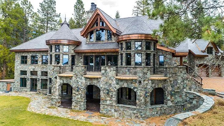 Auctions: 2:00 PM 12/12/2019 This spectacular multi-level home boasts over 10,000 sq. ft. of quality workmanship. Sagestone Luxury Estate is nestled on almost 40 acres in Creston at the end of a gated road. This estate also includes a guest house, barn, greenhouse, tennis court and pastures, and has views of the mountains. Two-story living room has wall of windows, large stone fireplace and opens to kitchen with island and turret shaped breakfast nook. Additional turret behind living room houses full wet bar. Dining room opens to custom, curved staircase to second floor. Master suite has sitting area and opens to bathroom with dual sinks, soaking tub and glassed-in shower. Other features include guest suite w/kitchenette, wine room, den/living space with kitchenette and fireplace, and spacious balcony with multiple access points. Swimming pool with lazy river area is under construction. GENERAL PROPERTY DESCRIPTION Total Sq. Ft: 10,274+/- Total Sq Ft Basement (B): 4,209+/- Sq Ft Main Level (M): 4,117+/- Sq Ft 2nd Level (2): 1,948+/- Year Built: 2006 Lot Acres: 39.81+/- Total Bedrooms: 5 Total Bathrooms: 7 (3 Full, 3 Three-Quarter, 1 Half) Note: A Buyer's Premium (Buyer's Fee in WI) will apply for this property. Please see Terms of Sale for details. Broker Licenses: MT National Parks Realty, Mike Anderson, Agent 406.261.9081