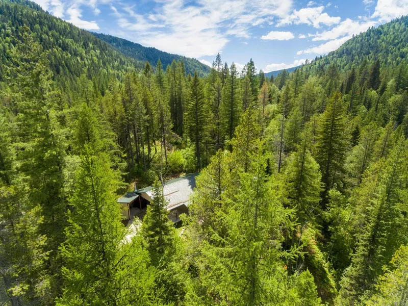 Spectacular setting for this single level, 3 bedroom, 2 bathroom home on 2.16 acres. Located up North Fork Road in the Tri Lakes area, the acreage has over 225 feet of Nine Mile Creek frontage and is close to Spoon Lake, Bailey Lake and Duck Lake. In addition, the property also borders thousands of acres of Forest Service and has mountain views. The home has a modern architectural design with an open layout, wood and tile floors, solid knotty alder doors, custom kitchen cabinetry, a walk-in pantry, vaulted t&g ceilings, wood paneling wainscot, central vacuum, in-floor heat, and a paved, heated driveway. Natural light abounds throughout the house from several skylights and atrium windows. There is an attached triple car garage, a carport and a separate 1400 square foot shop that is insulated with in-floor heat, a bathroom and a commercial 3-bay stainless steel sink.