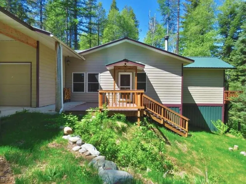 Spectacular setting for this single level, 3 bedroom, 2 bathroom home on 2.16 acres. Located up North Fork Road in the Tri Lakes area, the acreage has over 225 feet of Nine Mile Creek frontage and is close to Spoon Lake, Bailey Lake and Duck Lake. In addition to that, the property also borders thousands of acres of Forest Service and has mountain views. The home has a modern architectural design with an open layout, wood and tile floors, solid knotty alder doors, custom kitchen cabinetry, a walk-in pantry, vaulted t&g ceilings, wood paneling wainscot, central vacuum, in-floor heat, and a paved, heated driveway. Also, natural light abounds throughout the house from several skylights and atrium windows. There is an attached triple car garage, a carport and a separate 1400 square foot shop that is insulated with in-floor heat, a bathroom and a commercial 3-bay stainless steel sink.