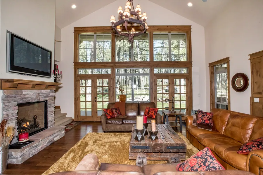 This custom 4 bedroom, 5 bathroom home is nestled against the mountains for privacy while still being in the highly sought after Wood Ridge neighborhood in between Kalispell and Columbia Falls. If you desire the mountains but crave luxury, this is the house for you. There is over 4100 square feet of open, elegant entertaining space with a main level living room, dining room, chef's kitchen, office, laundry, 1/2 bathroom and master bedroom/bathroom suite. Take a walk up the stairs to another master bedroom/bathroom suite, two more bedrooms and a bathroom plus an office which leads into a large family room over the garage. Sit on the back patio to watch the sun rise over the mountains, enjoy the fenced back yard, pond and water feature all surrounded by nature.