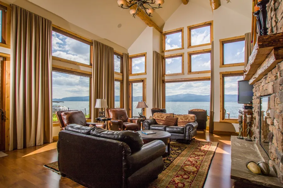 Everything is here for the perfect Flathead Lake retreat. An exquisitely designed residence on the north shore of the lake within easy walking distance of all the amenities of downtown Bigfork. The frontage is protected by an extensive retaining wall and features a multi-slip boat dock ready for boats, jet skis and guests. Take the boat into the city dock or take off to explore the expansive shoreline & restaurants around the lake. Enjoy the beautiful views from the large patio or while grilling your favorite meal on the built-in grill next to the outdoor fireplace. Inside, serve your guests their favorite beverage from the centrally located wet bar or finish dinner preparations in the spacious gourmet kitchen. Relax in the great room while enjoying the view from the many windows. When it