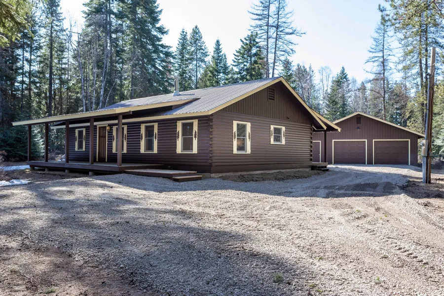 Tucked into the woods on this 3.4 acre lot is the ''Spotted Bear Cabin''. Completely remodeled in 2020, this 3 bedroom 2 bath home is waiting for your adventures, with all of the finishes you want, real wood flooring, carpet in 2 bedrooms with double thick padding, porcelain tile, granite and commercial grade Moen faucets throughout with stainless appliances. This is a very special mountain home in National Parks colors, with a finished oversized 30x40 garage that is insulated and drywalled. Come have seat on the covered front and rear porches, on this parked out acreage!