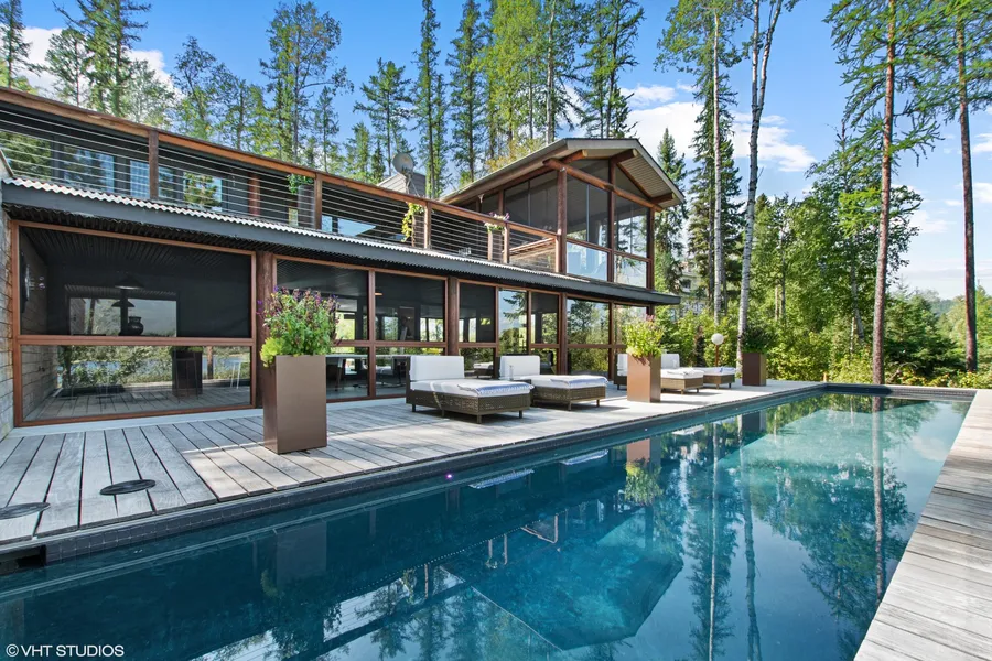 This waterfront dwelling with chic architectural and design elements tucked just inside the inlet of the quiet end of Whitefish Lake provides a laid back attitude and is surrounded by nature making it the idyllic getaway. Get ready to entertain or relax because this place exudes both. The main level has a stunning master suite and inviting common areas with attention to detail throughout and a massive deck with hot tub. The lap pool area has a calming spa-like feeling and is the centerpiece of the lower level outdoor area that includes outdoor fireplace, deck, covered and screened in areas, and dramatic views. Call Kelly Laabs 406.890.5451 or your real estate professional.