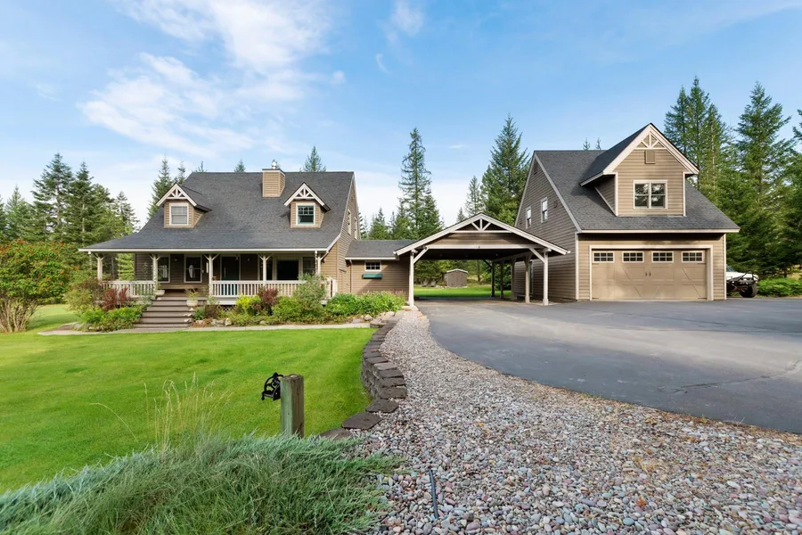 Nestled at the base of the foothills of the Swan Range, and walking distance to thousands of acres of forest and state land, sits a quaint retreat halfway between Bigfork and Kalispell Montana. Full of custom homey touches, and offered furnished, this unique cape cod style home embraces Montana on approx. 4.76 acres on 2 lots, and provides 4 bedrooms, 2 full baths, wood floors, stacked rock gas fireplace, large kitchen, custom bar, open beam ceilings, a bonus room, and several storage rooms. Additionally, there is a large toy or horse barn, an oversized two car garage with a bonus room/office above, a quaint garden shed, a large landscaped yard and a back-up generator system to ensure Mother Nature cannot shut down the main level living. Short term rental potential with Cond Use permit.