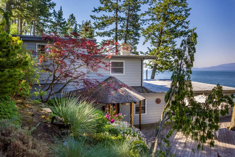 Welcome to FLATHEAD LAKE MONTANA. Mid century architectural family estate with iconic rock boulder that rests at the edge of the 430.84 foot shoreline is truly magnificent and attributes to the many features of this very special 6.52 acres located at the end of the lane, providing quiet privacy. Extensive decking and water feature connect the multi level main house and 2 story guest house. Steps away You will find a detached 4 car garage with shop & office. Lakefront living is easy with dock & boat-in garage at waters edge with protective seawall & gravel beach on both sides. The property is platted into multiple parcels which allows for additional building sites with grand lake vista views. The 1 acre dedicated, cherry orchard currently provides an impressive tax benefit to the estat
