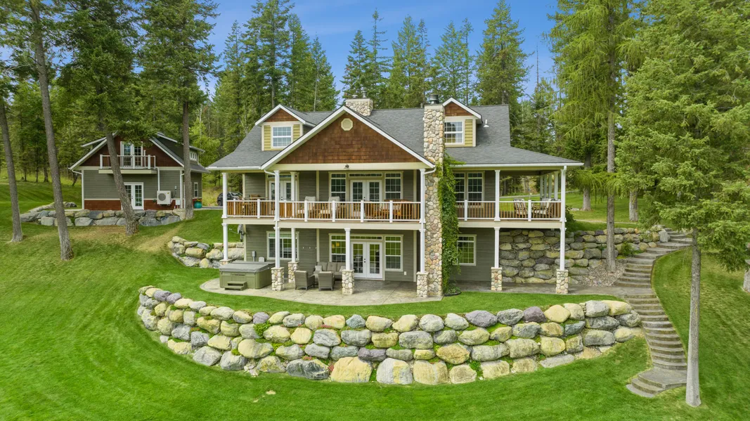 Welcome to 1945 Echo Creek Road, an incredibly rare opportunity to own a recently remodeled, craftsman-style home nestled perfectly against the breathtaking scenery of the Swan Mountain range. Take in the privacy of the five acres, which is still just a short drive from charming Bigfork. Because the property is adjacent to a waterfowl sanctuary, wildlife - including swans, osprey, ducks, eagle and geese - is abundant. The home & guest home are 3,728 sf of lakeside comfort, perfect for large gatherings. The stylish farmhouse kitchen features quartz countertops, stainless steel appliances and a large island for family and guests to gather. The living room is the epitome of Montana mountain living with an impressive stone fireplace, beautiful windows and French doors that provide incredible views and abundant natural light. Passing through the French doors takes you to the two-story wrap ar...