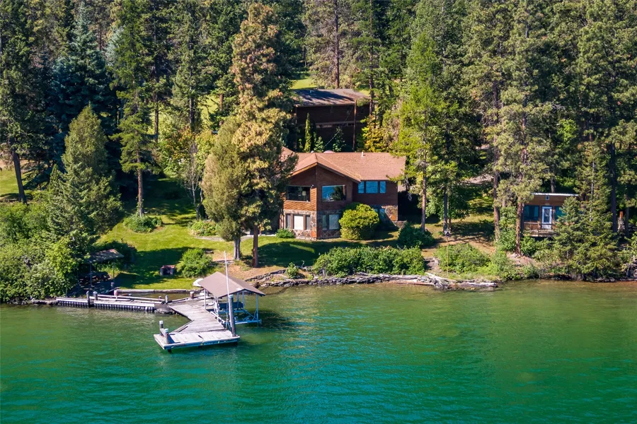 This is your opportunity to own on Marco Bay with 165 feet of Flathead Lake frontage. This 3-bedroom, 2.5-bath home provides a private and serene setting to enjoy the beauty of Flathead Lake, Swan Range and the peaks of Glacier Park. Designed for these owners and built by Dan Day. The main floor, with vaulted ceilings, spacious main bedroom, and a bonus sun room for ease of living, while the daylight, walkout lower level with it's tall ceilings, includes 2 bedrooms, large media room, workshop with 2 large storage rooms has direct access to Flathead Lake. The waterfront area features pebble beach, a dock and shore station that needs replacement—please do not walk on this area. There is a harbor that could be re-dredged for water toys, pending a permit. An attached garage adjacent to the utility room and kitchen for ease of access. Also, the house boasts an outside storage room by the lake for lake toys galore! Property includes 1.99 acres with an additional single car garage/shop with wood stove. Also included is a large 3 bay garage for boat and larger vehicles parking with additional storage room. On west side of the property the driveway meanders past an area with a garden area or could be used as an orchard or garden. There are water spigots throughout the property. This exceptional property on Flathead Lake is truly a treasure and seldom available. For a private tour contact Laine Averill 406-249-4802, Patrick Landon 406-253-0997 or Cherie 406-253-4546 or your real estate professional. Call to see this exceptional property. The birdhouses and bell are excluded from the sale.