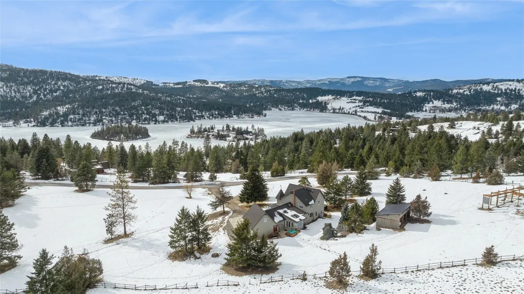 BE IN BEFORE THE HOLIDAYS! Imagine holidays in your new Montana lake view 5-acre estate! Make memories in this epic fall-winter home overlooking Foy's Lake and the mountains. This home blends modern amenities with peaceful privacy yet not too secluded! Just minutes from shopping, Logan Health and the bypass. Peace of mind is here with a new warrantied roof, new furnace, new paint and updates throughout plus a new chef's dream kitchen with high-end Monogram appliances. The main floor also has new engineered hardwoods, a formal dining room and living room with a double-sided fireplace. The vaulted family room offers a full coffee/wine bar with built-in espresso machine, walk-out sliders, and a cozy wood-burning stove. A glass barn door slider into the office finishes off the main floor. The newly finished entertaining basement includes a 85" tv, kitchenette, bar, a large guest bedroom and new glass-shower bath. Upstairs you will find a spacious master ensuite with two more bedrooms and 2nd full bath. The heated & finished extra-deep garage with vaulted workshop offers cabinets throughout plus a 3-stall new pole barn. This home combines luxury, functionality, and natural beauty in one exceptional rare package. A separate entrance studio apartment with its own hot tub adds to the flexibility/potential. Outside you'll find a new 11-person swim spa, a rock sunset patio with fire pit and an 80' Ninja obstacle course for the kids. With private HOA tennis courts and equestrian trails plus nearby Lone Pine State Park, Herron Park and the new Foys to Blacktail trail, this estate offers everything you need for a vibrant lifestyle. Don't miss the chance to own this rare property! FURNISHED PACKAGE OPTION AVAILABLE FOR TURN KEY LIVING.