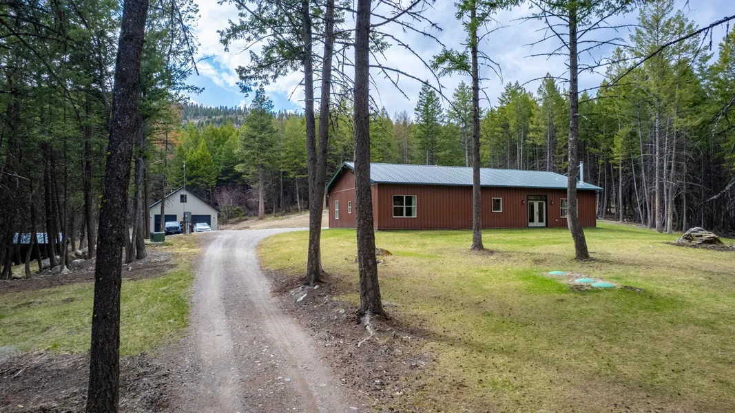 Bright, spacious, immaculate, single level home on 12 private acres! This energy efficient, open-concept 2304 sq. ft. home has 4 bedrooms, 2 bathrooms, a walk-in pantry, radiant floor heat, wood stove, A/C and 10 ft. ceilings. The primary features a walk-in closet and oversize tub. Outside, enjoy a large fenced, raised bed garden and 1792 sq. ft. detached pull through garage with a 3/4 bath and 784 sq. ft. finished 2 room guest space/office. Multiple benches on the property and another potential building site. Mountain views could be had with some tree thinning. Light covenants, mature timber, 20 minutes to town.
