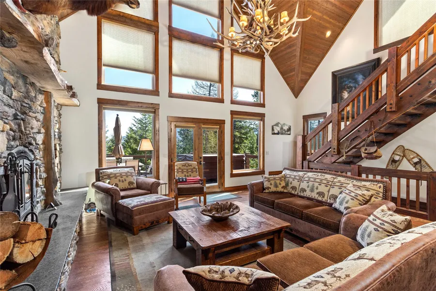 Exceptional craftsmanship in this exquisite 4-bedroom, 3.5-bathroom custom-built home, meticulously constructed by Graham Design & Construction. Nestled on 9.90 acres, this home offers additional privacy, dual gated entrances, and proximity to the serene Bitterroot Lake. Inside, the home spans 3,748 square feet and showcases meticulous craftsmanship throughout. The gourmet kitchen is a chef's dream, equipped with GE Monogram stainless steel appliances—including a gas range, refrigerator/freezer, convection microwave, oven, and dual cooler drawers. A striking leathered granite countertop adorns the expansive center island, complemented by custom cabinetry. The open-concept main level boasts vaulted ceilings and a grand wood-burning fireplace, with a hand-selected, log mantle, vertical accents, and flooring. The primary suite offers a serene retreat, featuring a cozy rock fireplace, dual walk-in closets, radiant heat flooring, his-and-her sinks, and a spacious walk-in shower. Upstairs, a generous loft overlooks the great room and is illuminated by one of two custom antler chandeliers. Two additional bedrooms with walk-in closets provide peekaboo views of Bitterroot Lake and share a well-appointed full bathroom. The walk-out basement includes another en-suite bedroom, a mudroom with ample storage, and a convenient dog wash area. Step outside to a large composite deck featuring a premium Bullfrog spa, perfect for enjoying the stunning surroundings. Additional amenities include an oversized two-car garage, an emergency Generac generator, two owned propane tanks (1,000 gallons for the main house and 500 gallons for the shop), and a 30'x56' heated shop/RV/boat garage with pull-through exits, a 50-amp RV hookup, RV dump, and a half bath. This remarkable property seamlessly blends luxury and functionality, offering an unparalleled living experience in the heart of Montana.