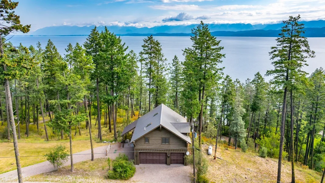 This charming Lakeside, Montana, cabin boasts breathtaking views of Flathead Lake and an ideal location near a public boat launch. Just 14 miles away, about a 34-minute drive, you'll find Blacktail Mountain Ski Area, perfect for winter recreation. The property features a spacious 3-car garage for vehicles and equipment, and it comes fully furnished, with only a few personal items excluded. The septic system is approved for the addition of another three-bedroom home, offering room for future expansion. When not in use by the owner, the cabin also presents an excellent opportunity as a vacation rental.