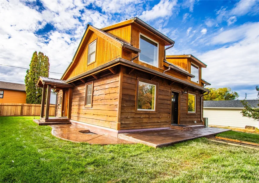Once an original home in Somers, this beautifully relocated and fully updated 4-bedroom, 2.5-bath home now shines in the heart of Kalispell. Rustic character and modern comfort blend seamlessly with log walls, exposed beam ceilings, and a stunning new kitchen featuring quartz countertops, fresh cabinetry, and stainless steel appliances. The cozy living room centers around a gas stove-perfect for Montana evenings. Major improvements include a new insulated foundation, two new heat and A/C mini-splits, and all-new wiring, plumbing, and city connections to the street. Zoned for an ADU and ideally located beside Dry Bridge Park with its fishing pond and walking path, this move-in-ready home offers small-town charm, big character, and easy access to Thompson Park and downtown Kalispell's vibrant shops and dining. Seller is willing to negotiate a credit at closing!