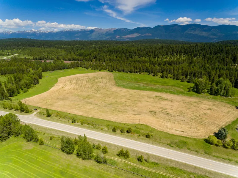 Approximately 28 level acres primarily made up of meadow and two large stands of trees just off Hwy 93. A seasonal creek runs through the property.