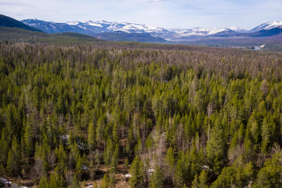 28 acres of heavily forested land in the lower North Fork off of the private, Teakettle Road. Views of the surrounding mountains and Glacier Park are more prevalent from the west side of property with extensive thinning needed to enhance the views. Currently, a private setting overlooking the mountain tops and valleys. Flathead River access within a few miles and West Glacier within 10 miles. Electric easement for neighbor across southern corner of property.