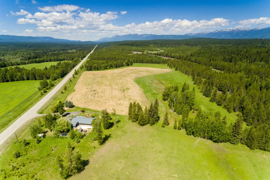 Approximately 28 level acres primarily made up of meadow and two large stands of trees just off Hwy 93. A seasonal creek runs through the property.