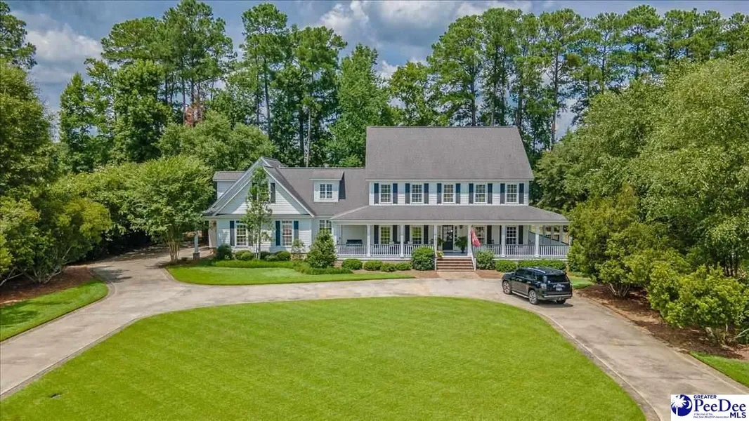 You will be smitten the second you are greeted by the huge wrap around front porch of this absolutely gorgeous home with awesome southern charm that captures the spirit of a gentler time. Warmth & calmness is embodied with it's cool color palette that flows throughout the home combined with every modern amenity to make a truly spectacular residence. This custom built, one-owner home features beautiful hardwood floors, a sun-filled great room with 2-story ceilings, built-ins & gas logs fireplace, large dining room with handsome moldings & coffered ceiling, large open kitchen featuring under counter lighting, gas range, pot filler, warming drawer, work island & breakfast bar, large pantry, wet bar, computer room & powder room. The hearth room with gas logs fireplace has french door that opens to back porch. Laundry room is spacious with sink, storage, broom closet & freezer space. Master suite is downstairs with large double walk-in closets, whirlpool tub, separate shower & his 'n her vanities. 3 large bedrooms upstairs with 2 fulls baths & 1 half bath, oversized bonus & office/man cave with desk & storage. The cozy back porch overlooks a beautifully manicured backyard with garden space. And a 3-car attached garage all on a large 0.74 acre lot at the end of the cul-de-sac. This gem is simply a breath of fresh air in very desirable West Florence location.