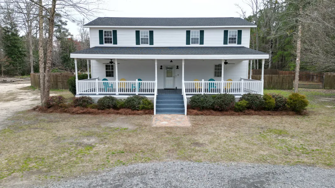 Move right into this beautifully updated property! Offering a blend of privacy and accessibility, this 3-bedroom, 2.5-bathroom house sits on just under 5 acres of serene land. The interior welcomes you with soaring 17-foot ceilings and a captivating Juliet balcony in the living room. The main floor features the primary suite, designed for accessibility and comfort, while the upstairs boasts spacious secondary bedrooms. Recently remodeled, the spacious kitchen shines with new granite countertops and appliances. The rest of the house is equally matched by fully updated bathrooms and enhanced with a new HVAC system and brand new roof, both include warranties that will transfer to the new owner. Outdoors, enjoy the possibilities of nearly 5 acres, paired with a 40'x15' covered front porch ideal for relaxation or entertaining. It has a convenient location to key amenities and leisure—with plenty of dining and shopping options close by, minutes from MUSC and McLeod Hospitals, and a short drive to Myrtle Beach. This property promises an easy transition to a home that beautifully balances modern updates with the tranquil charm of natural surroundings. Don't miss this exceptional opportunity! Home Inspection Report and Clear CL100 from September 2024 are available.