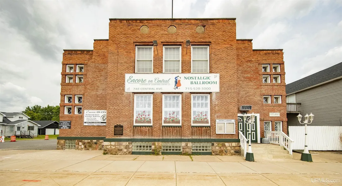 Encore on Central – A rare and remarkable opportunity to own a fully renovated 15,000 sq ft historical commercial building located on highly visible US Highway 2 in the charming town of Florence, WI. This iconic property offers endless income-generating potential and is move-in ready for a variety of uses. Step inside to discover a breathtaking grand ballroom that accommodates up to 300 guests—perfect for weddings, corporate events, training seminars, and special occasions, along with a 50 ft bar area. The space also includes a full commercial kitchen, a beautiful bar, and all tables, chairs, and inventory included in the sale. Encore on Central currently generates rental income with established tenants including a tanning business, a martial arts studio, and an exercise/gym area. With a valid Wisconsin liquor license, this venue is primed for expansion—think brewery, supper club, upscale event space, or business incubator. The building has been fully point-tucked many renovations invested, combining modern amenities with preserved historic character. A true turn-key investment offering outstanding income potential in a high-traffic location. Bring your vision to life in this one-of-a-kind property!