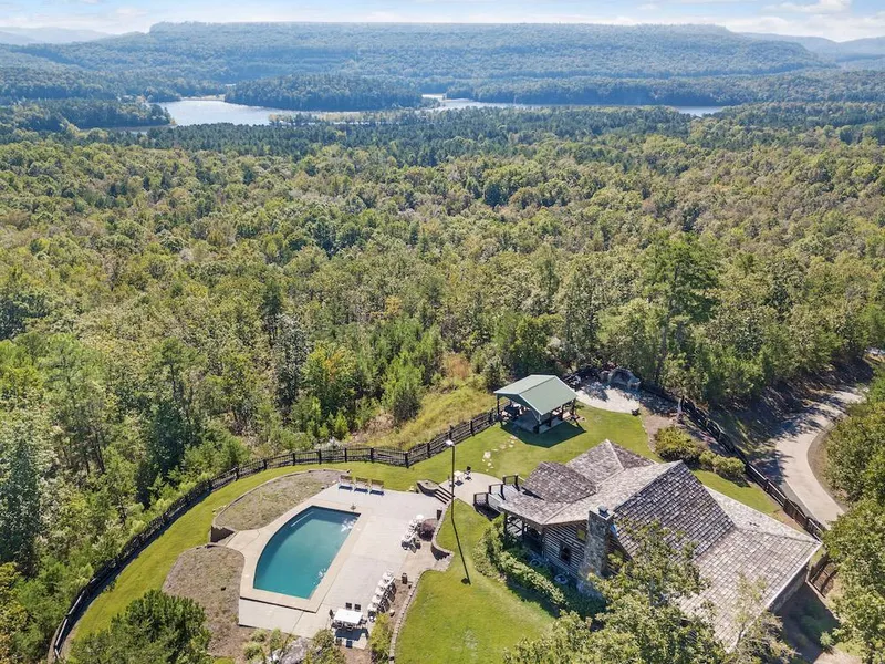 Relax by the pool or hang out in the pavilion or on the deck and take in the lake with the mountains behind. Feel the mountains around you as you relax in one of four authentic log cabins. Enjoy the Sport Court for basketball, tennis, volleyball, shuffleboard, hopscotch, four square, or badminton. Beautiful mountain views of the sunset and sunrise, ideal retreat center or for family compound located on 420 acres in the Chattahoochee National Forest. Dont miss your chance to own this mountain oasis.