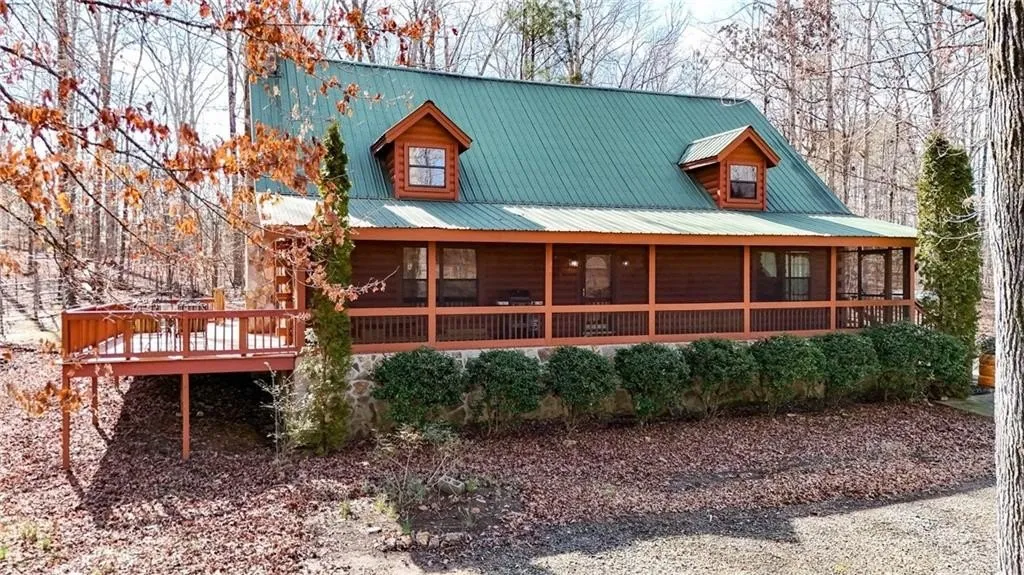 Welcome to your private country retreat: Nestled on 5.34 fully fenced acres, this charming 3 bedroom 2 bath log home offers the perfect blend of rustic character and modern comfort. Step inside to a warm and inviting living area featuring a wood burning fireplace with blower, ideal for cozy evenings. The spacious master suite upstairs provides a peaceful escape, the additional two bedrooms offer flexibility for family or guests. Enjoy the outdoors year-round from the screened porch or relax and entertain on the brand new deck. Equestrian-ready, the property includes two horse stalls and is completely fenced, making it move in ready for your horses. Additional highlights include: New HVAC, Detached 25x30 two car garage, private usable acreage. If you're looking for space, privacy and country charm this property delivers.