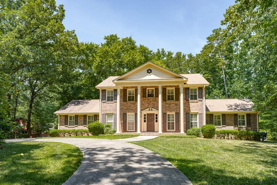94 Quiet Acres presents a stately manor, 2-story brick with large columns on 9 wooded private acres with gated drive in cul-de-sac. This home has 5 bedrooms,3.5 baths, formal living room, formal dining room, den with fireplace, master on the main, very nice kitchen with breakfast area, and separate red barn with stalls, loft area, tack room or shop. This area is partially fenced. Back yard holds formal gardens and all kinds of wild life. Public water and well. Jenn Aire cook top.