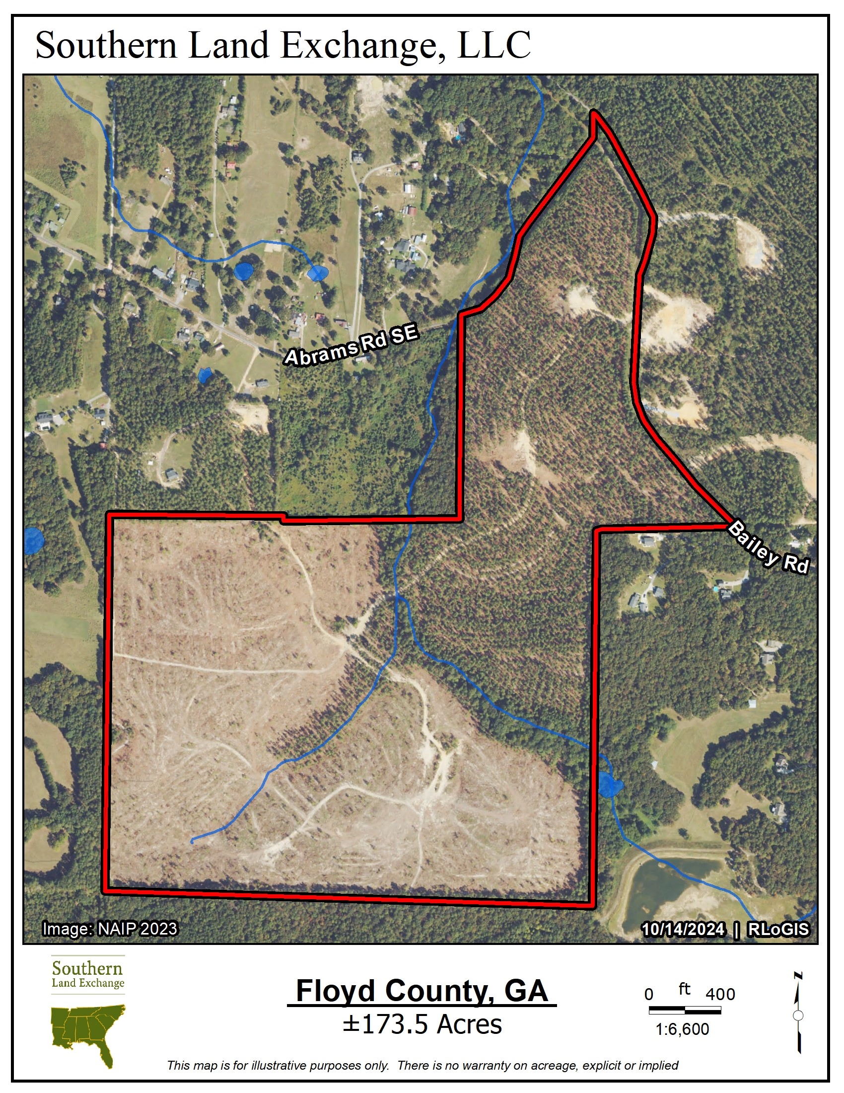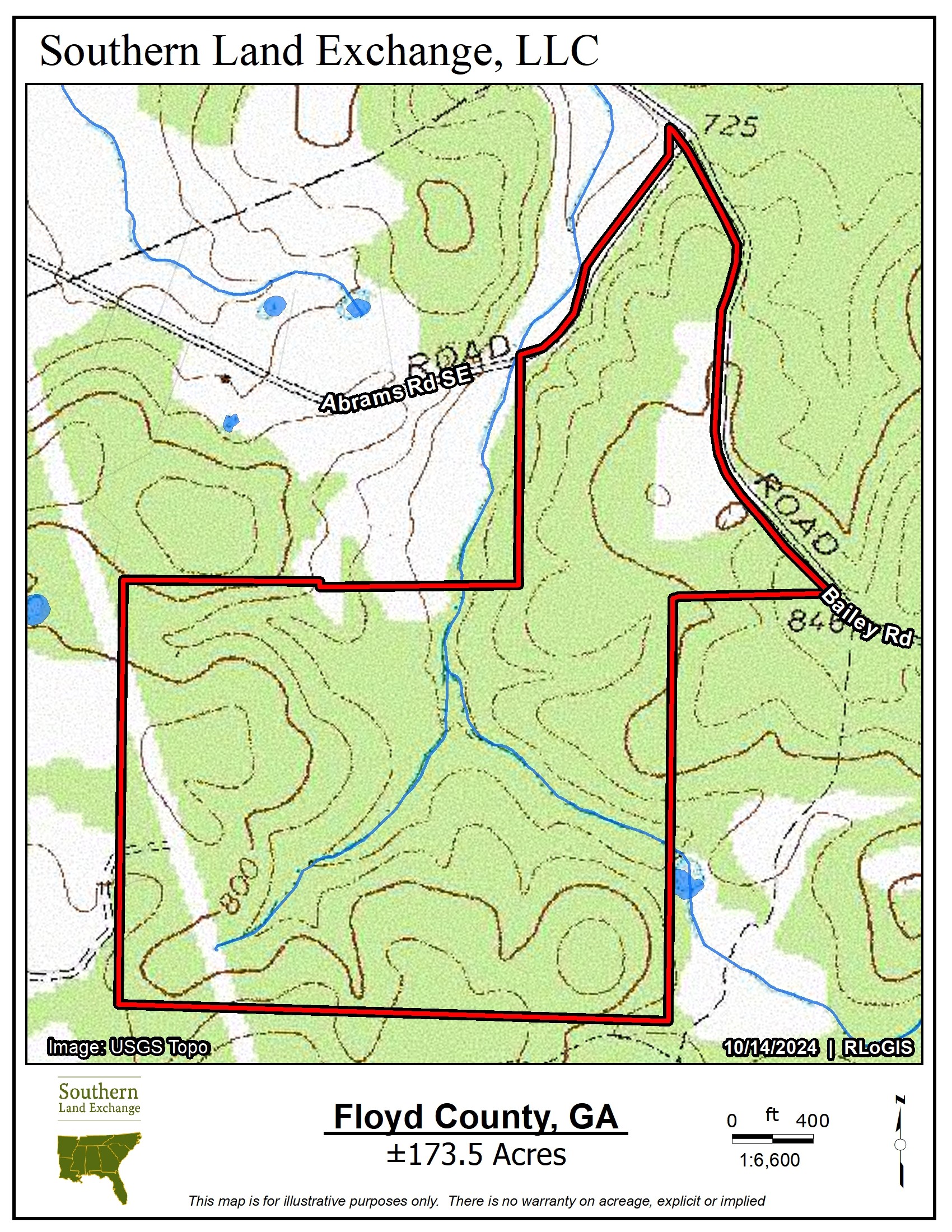 From Springhill Baptist Church in Silver Creek, continue heading south on Abrams Rd for 2 miles until the intersection at Bailey Rd. Turn right onto Bailer road, the property will be on your right and the driveway will be 0.2 miles down.
