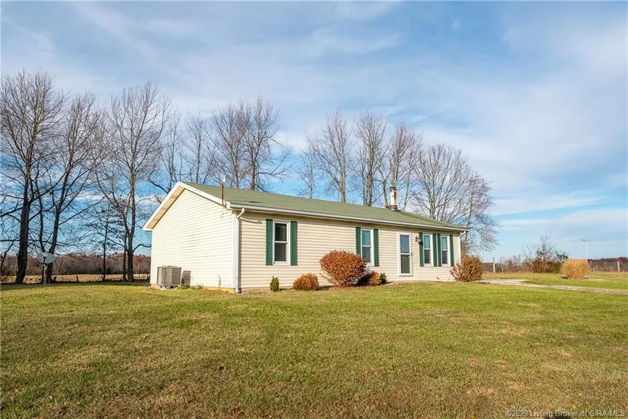 Custom built charmer 2 miles from HUBER WINERY, it offers a PEACEFUL COUNTRY SETTING. **Eligible for ZERO DOWNPAYMENT with a USDA 100% loan** This home is surrounded by privacy "buffer", trees, rolling fields and plenty of fresh air! The open floor plan is inviting and you'll enjoy peaceful country views from every window. Owners supplement heat with the Buck Stove, but there's a brand new HVAC system, just installed last summer (w/ programmable thermostat w/ app for smartphone controls). There is a washer/dryer hookup in bdr #2 closet, plus a second hookup in lower level. This well maintained home has MANY UPDATES, including: NEW Carpet, NEW engineered LVP flooring, NEW roof (2007), NEW triple pane/ double tilt windows (w/lifetime warranty), NEW trimwork, NEW interior doors, NEW new patio door & NEW storm door. All kitchen appliances plus washer/dryer remain. The basement has one room finished and the rest is a blank slate. You could easily increase your living space here. It has an exterior door which offers a WALK-OUT exit to the backyard. Kitchen appliances stay and so does washer/dryer. Really... just MOVE RIGHT IN! Septic pumped approx 2 yrs ago. Award winning FLOYD CENTRAL SCHOOLS!