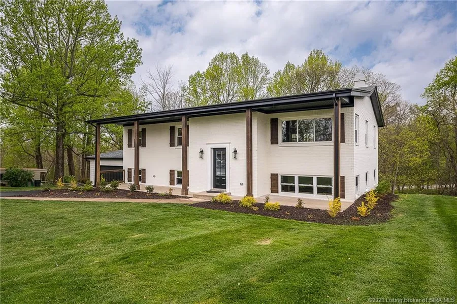 This is a SPECTACULAR find in one of Floyds Knobs' best kept neighborhoods! Situated on OVER AN ACRE in super-convenient Buffalo Trail, this completely REMODELED open floor plan will blow you away! 4 bedrooms, 3 FULL baths, HARDWOOD floors, granite countertops, beautiful backsplash, STAINLESS STEEL appliances and ALL ceramic tile bathrooms! A screened in porch with gorgeous tile overlooks the HUGE backyard and the lower level has enough space to entertain for DAYS! Lower level also includes a WET BAR, tons of storage and lots of natural light through those brand new windows! BIG 2 car garage! Worry-free here with a NEW ROOF, HVAC and water heater. This home HAS. IT. ALL!! One selling member of owning LLC is licensed Real Estate Agent in IN. Sq ft & rm sz approx. Additional Parcel ID's: 22-04-02-100-312.000-006, 22-04-02-100-072.000-006, 22-05-02-100-303.000-007, 22-04-02-100-313.000-006....