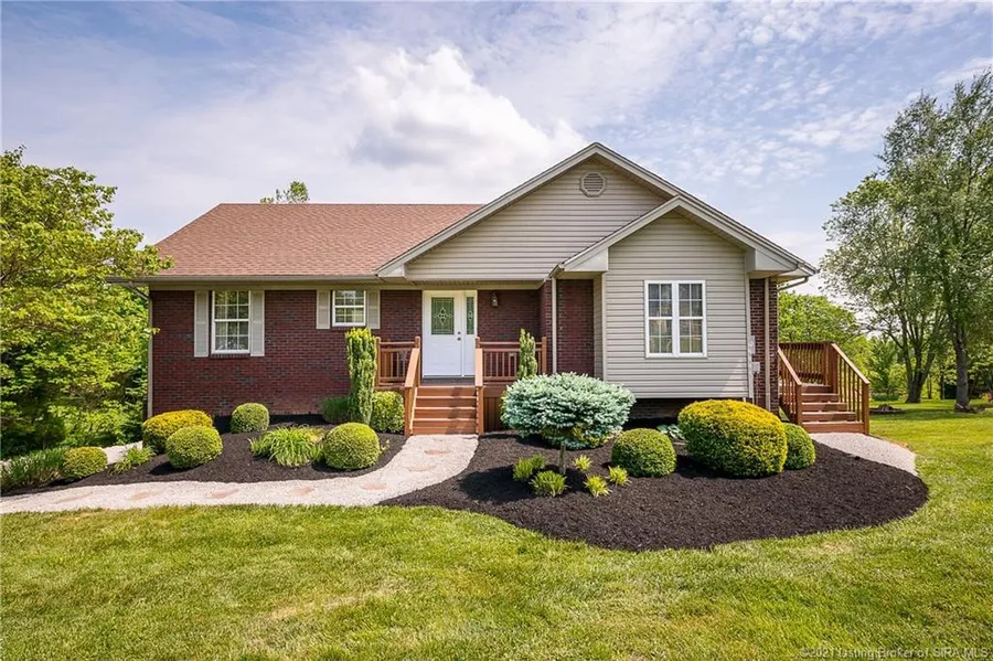 GORGEOUS, Park-like VIEWS on 5 ACRES!!! Floyd County BEAUTY! You?ve been waiting for this one!!! MOVE IN READY! Raised RANCH, 4 Beds, 3 FULL Baths on a WALKOUT! This property has sooo much to offer! Enjoy beautiful VIEWS from every window, or take a walk through the mature shade trees, orchard, or large garden area. NEW driveway and fresh NEW landscaping! Lrg Entry on Main floor, Lrg Living Room OPEN to Kitchen and Lrg Dining. Master Good Size, Master Bath w/Jetted Tub. Beds 2/3 NICE size too w/ Full Hall/Guest Bath. Lower Level WALKOUT w/HUGE Rec Space for Entertaining, Cards/Game area, LOTS of Natural Light and GREAT VIEWS. Lrg 4th Bed, AND 3rd Full Bath. Oversized One Car w/Shelving, Swing Set STAYS! FRESH PAINT throughout, HVAC Serviced and Maintenance Agreement w/Allegiance Heating and Air, Carpets JUST professionally cleaned May 19, 2021. Septic Pumped May 2021. Great Neighbors, Convenient to AWARD WINING FLOYD CENTRAL SCHOOLS and ONLY 15-20 Min. to the Sherman Minton Bridge, 10 Min to Corydon! ft & rm sz approx.