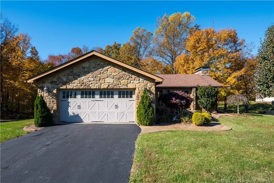 You don't want to miss out on this immaculate ranch home in Floyds Knobs! First time ever on the market!! It features 4 bedrooms (1 with no egress) and 3 full bathrooms! Beautiful hardwood floors in the living room with a floor to ceiling stone wood burning fire place!! The kitchen has lots of cabinets with granite counter tops! A large master suite with a huge master bathroom! Wake up and look out the window at your private fully stocked lake!! Sitting on 4.82 acres! In the walk out basement there is a nice family room with a bar and another bedroom! There are 2 garages.. 1 front entry 2 car garage and 1 lower level garage! A nice wood shed for your buck stove in your basement! The property is fully fenced in for a mini horse farm! Large pole/horse barn with stalls .. The property also has some wooded areas for extra privacy.. call for your private showing today.. sq ft is approximate if critical buyers should verify.