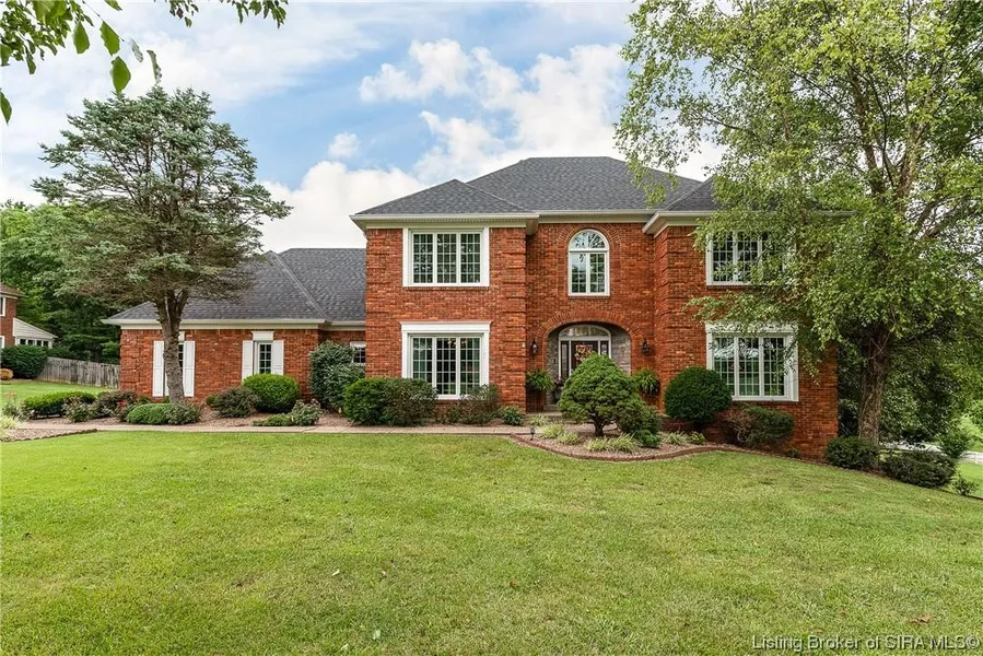 FABULOUS FLOYDS KNOBS LOCATION! Move-in Ready, METICULOUSLY Maintained. AWARD WINNING FLOYD CENTRAL SCHOOLS! 4 Beds 3.5 Baths, BEAUTIFUL 1.6 Acre Wooded, Corner lot. PRIVACY, Luxury, and comfort!!The GRAND Entry/foyer is wonderful to greet your guests, HARDWOOD throughout Main Living/Dining/Kitchen. Attention to DETAIL with lots of CROWN and Dental molding, OPEN/SPACIOUS Plan, Living Rm/Music Rm w/Sliding Doors OPEN to HUGE Great Rm, NATURAL Trimmed Boxed 10ft Ceilings, Gas FP, Wet Bar, Lrg French Doors open to LARGE Deck overlooking lovely backyard. Oversized Formal Dining, Flows well to EXPANSIVE Kitchen. TONS of SOLID WOOD Custom Cabs, PANTRY w/Pullout Drawers, Island Bar w/Seating, Double Oven w/warming drawer, Jennair Cooktop, Lrg Eat-in Brkfst Nook overlooking beautiful VIEWS! ALL Bedrooms upstairs, OVERSIZED Dreamy Owner?s Suite, Sitting/Reading area, Lrg WIC w/Built-ins, HUGE Luxurious Bath, Long Vanity, Sep. Shr, Soaker Whirlpool, Built-in Armoire. Beds 2/3- Share FULL Bath. Bed 4 across from Lrg Hall Bath. Lrg Laundry w/Hanging, Cabs, Sink on 2nd floor near Beds. FINISHED LOWER LEVEL WALKOUT! Perfect for entertaining, TALL CEILINGS, Waterproof Luxury Vinyl, Lots of NATURAL LIGHT! Brick Hearth/Gas FP. NEW ROOF JULY 2023, NEW GUTTERS/Gutter-guards, NEWER windows, NEWER HVAC Main/LL (5yrs). HUGE 3 Car Garage, PULL DOWN Attic Storage, and MORE! Across the street from Valley View golf course, & 2 minutes to Highlander Point & Floyd Central Schools! Sq ft & rm sz approx.