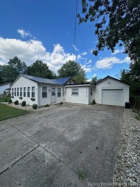 THIS IS A CHARMING STARTER DOWNSIZE HOME IN A FLOYDS KNOBS PERFECT LOCATION..... Just off Highway 150 this makes for an easy commute to Louisville Metro Area. 1 month old 40 yr life metal roof, This home is a roomy place all on one level situated on a 1/2 acre, 1 car attached garage, enclosed large sunroom/family room/home office, two large outdoor buildings for storage, concrete drive, back private patio, Stainless smart refrigerator & appliances including washer & dryer remain. Just a minute from coffee shop & very few minutes from all Highlander Point Attractions. Immediate possession at closing.