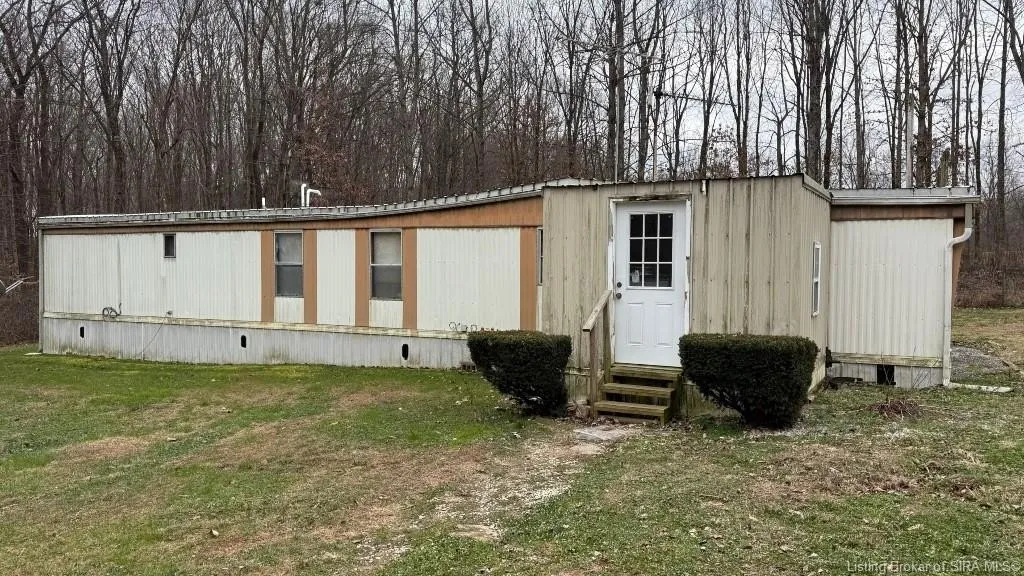 Affordable country living in Greenville! This 2-bed, 1-bath manufactured home sits on roughly 0.6 acres and offers a great opportunity for a buyer looking for value, privacy, or a project. The home is being Sold AS-IS and needs cosmetic updating, but several big-ticket items have already been handled, including a newer roof (3 years) and updated water lines underneath. With plenty of room to build equity, this property is ideal for cash or conventional buyers. Enjoy a peaceful rural setting with easy access to Greenville, Floyds Knobs, and New Albany. A great chance to own land at an affordable price!