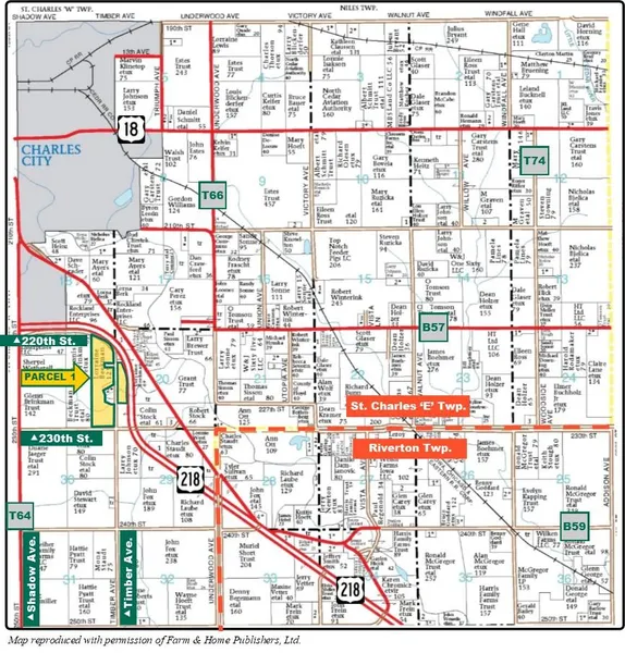 170 acres located on the southeast edge of Charles City on either side of Timber Ave. will be offered in two parcels of 130 acres and 40 acres. Farms have easy access to the Avenue of the Saints and are located within 34 miles of four ethanol plants.