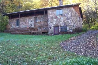 This spacious three bedroom, two and a half bath, stone masonry and cedar sided custom built home is truly a home for all seasons. The cathedral ceiling in the great room lets in plenty of light to mix with the textured rock and wood hues. Many custom features include a wine cellar, walk in pantry and tile floors in the kitchen, great room and baths. A multi fuel air duct heating system allows for energy efficiency. The two plus car detached garage has added upper space already wired, plumbed and sub floored for added lodging or studio space. It is nestled on nearly seventy four acres of woods and fields bordering National Forest Lands. Almost nineteen acres are suitable for pasture and gardening. Front views onto mountain range.