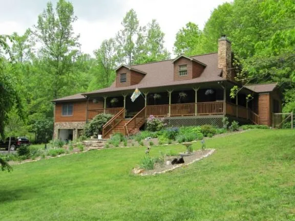 Private log home in the mountains with stocked trout stream nearby! The utmost in privacy- long entrance drive to a gorgeous setting surrounded by trees and woodland. Sweet little trickling stream and swimming pond with diving board, sandy beach and basketball pad. Cute and cozy guest log cabin too. This is a 6 bedroom home with 4.5 baths. Large vaulted living room, exposed beams, hardwood floors, finished basement, large garage. New updates. Located near Buffalo Mountain!
