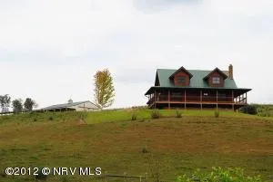 Custom built log home w/ Barn/Stable & fenced pasture w/ creek & views! Property is fenced & cross fenced & ready for horses, cattle, etc... Home has large, vaulted ceiling in Great Room w/ Stone Chimney & custom built mantel & open loft area. Kitchen has bar area w/ 2 sinks. Over 122 feet of covered porches on 4 sides of home for outside entertaining. Solid Cherry Hardwood Flooring throughout, Solid Wood Interior Doors, Master Suite and Laundry on Main Level w/ custom tiled master bath. Full walkout, basement w/ 9' poured concrete walls & plumbing for full bath for future expansion. Priced well below tax assessment. Great opportunity to own your own farm that is totally completed & ready for horses, cattle, etc... Adjoining 5.34 acres available for $49,900. Must See!