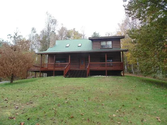 Top quality log home in excellent condition. Features 3 bedrooms, 2 baths, huge stone fireplace, covered porch and deck on three sides. Has a full basement, hardwood and tile flooring, vaulted ceiling and walk-in closets. Set on 10.3 acres with a nice fish pond, stream and gazebo. Quiet country setting would make an ideal vacation, retreat property or serene family home.