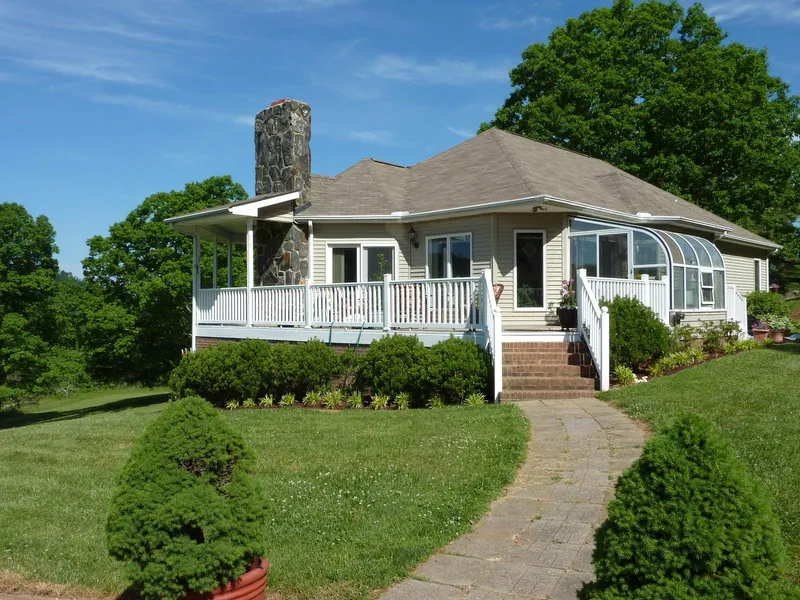Well built, contemporary, mountain home for sale in Meadows of Dan, VA. This 3 bedroom, 2 and half bath home is located on 8+ pristine acres less than 1 mile from Mabry Mill and the Blue Ridge Parkway. Multiple, large windows access the views of the surrounding mountains in all directions. The large kitchen/dining combination look out to the back yard and side deck. Custom countertops are just one indication of the quality throughout the home. All appliances including a trash compactor and Jenn Air range will convey. The large master suite consists of the 245 x 1511 bedroom with large adjoining bath with double vanities, garden tub and separate shower. The covered front porch and open side deck offer the options of shade or sun at almost all times of the day. The wood burning, stone fireplace is a focal point of the large living room when the surrounding views disappear in the moonlight. The 8+ landscaped acres are level to sloping and very well manicured. There is an old discontinued state road running behind the property making a wonderful place for wooded walks or horseback riding. The partial basement has propane heat and is currently functioning as and in-law suite with shower and cooking facilities in place. The home is less than one mile from the Blue Ridge Parkway and Mabry Mill and within a short drive of Chateau Morrisette and Primland Resort.